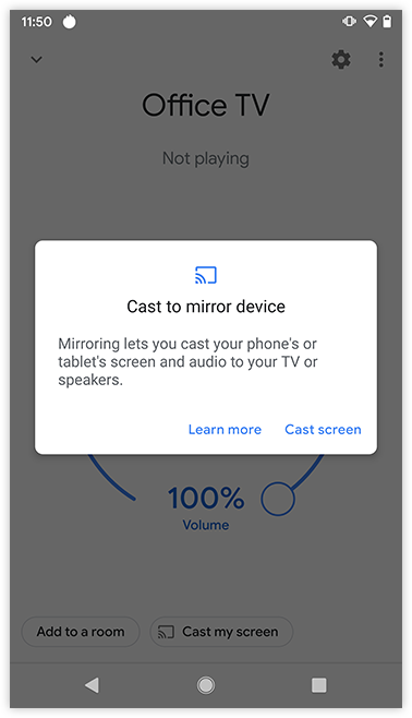 Step 2 - Connect to your Chromecast device using Google Home app and enable the sharing of the screen to your TV.