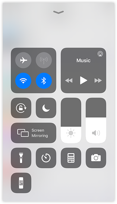 If your iOS version is iOS 12 or later, swipe down from the upper-right corner to reveal the Control Center (image on the left).