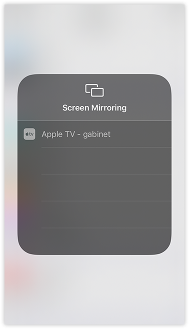 Otherwise, swipe up for Control Center instead and tap „ Screen Mirroring” and connect to your Apple TV (image on the right).