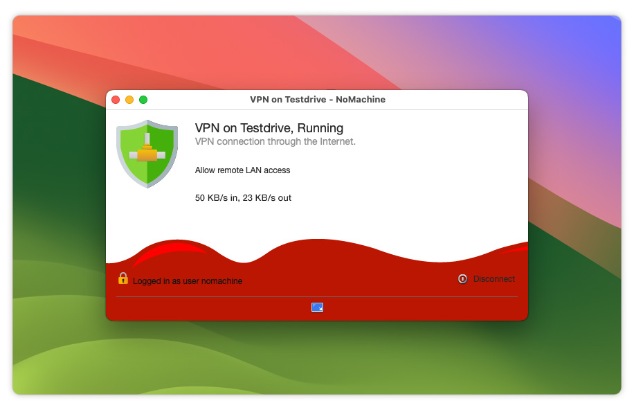 NoMachine provides the ability to setup your own Virtual Private Network (VPN), without the need for relying on third party providers or software. NoMachine VPN is a feature built-in to the Enterprise family that works out-of-the-box giving you additional protection when remotely accessing resources available on a remote LAN and during your internet browsing activity.