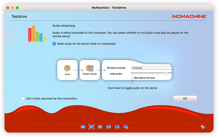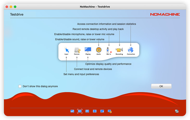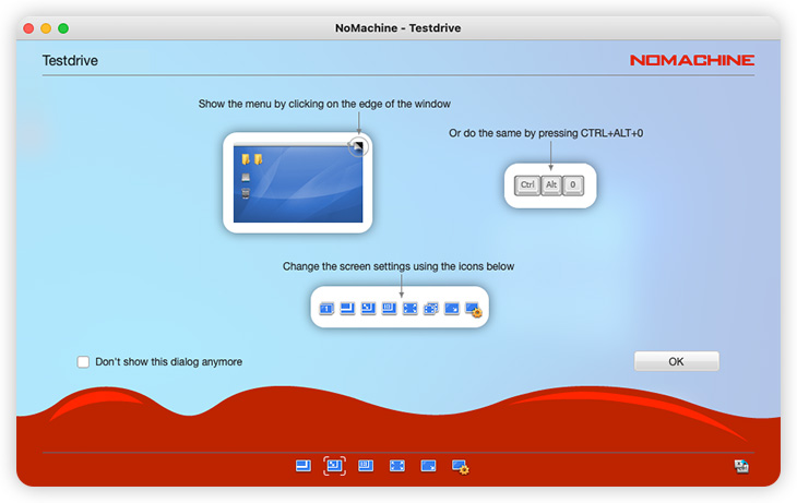 When using NoMachine, welcome panels are displayed upon opening the application and at session startup. These panels provide usage information on getting started with NoMachine and how to access most of the common settings from within the session. Welcome panels can be disabled in various ways. How to re-enable them depends on how they have been disabled.