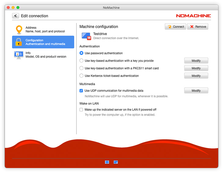 In the Configuration panel you can also enable the Wake on LAN feature to power the remote computer on.