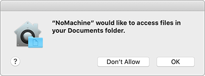 The next step is to allow file-access permission to NoMachine. A system dialog request to grant permission will be displayed whenever NoMachine needs access to a file or folder.