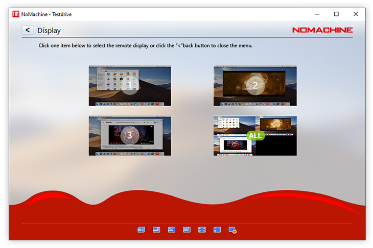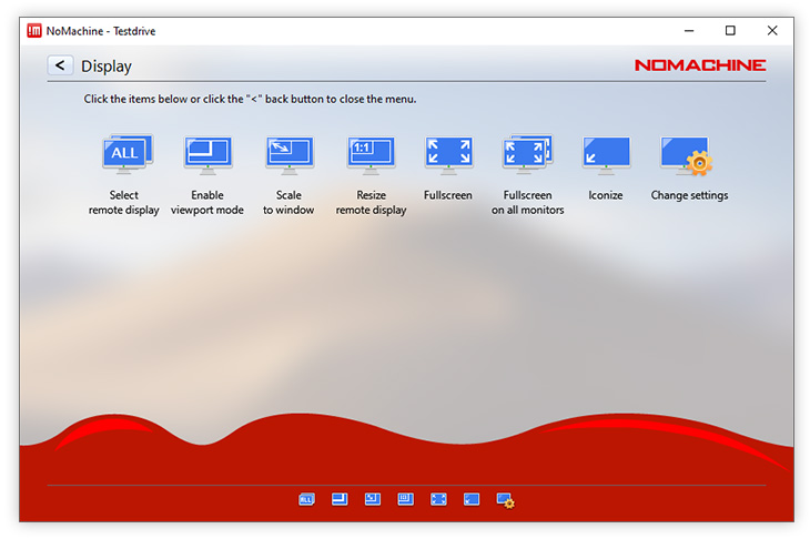 Resize remote display changes the geometry of the remote desktop to the current size of the NoMachine window. Some limitations might apply to a physical desktop session since the remote graphical adapter supports a limited set of resolutions.