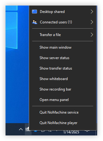 When somebody is connected via NoMachine to the desktop, the !M menu also provides: