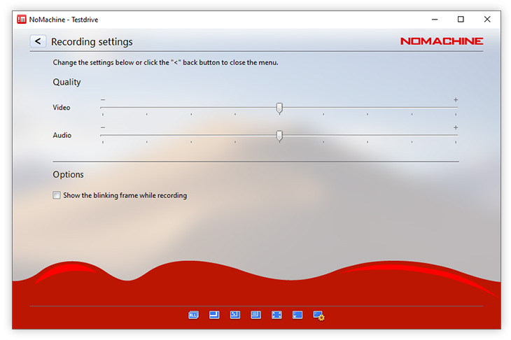 When two or more users are sharing the same desktop and all are recording but with different quality settings, NoMachine will choose the lowest quality among them. To identify when recording is taking place, check the 'blinking frame' box.