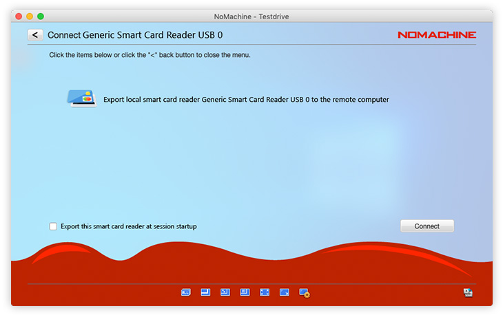 This service will make a smart card reader attached to the client (player) machine available on the server machine. Any application on the server that supports smart cards can be used just as if the reader was attached to the server machine. For example, a user can use the key stored on the card to authenticate to a server somewhere, or use it to digitally sign a document or e-mail. It is necessary to provide the path to NoMachine's libpkcs11.so library, where normally you would provide the path to your standard libopensc library.