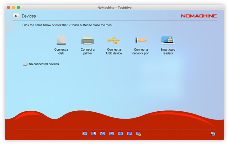 The first time you want to use any of the following in your session: printers, disks, USB devices, network ports and smart card readers you must connect the device first, after which that device will always be available in your session until you 'Disconnect' it. Devices can be connected both ways i.e from the local machine to the remote computer and vice-versa.