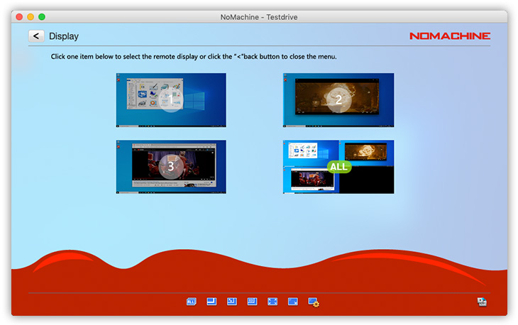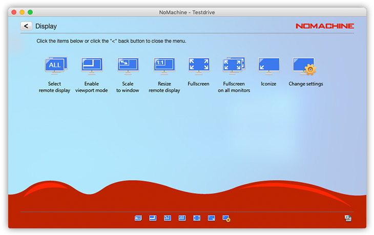Resize remote display changes the geometry of the remote desktop to the current size of the NoMachine window. Some limitations might apply to a physical desktop session since the remote graphical adapter supports a limited set of resolutions.