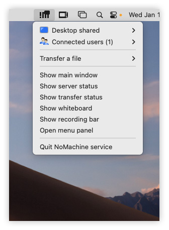 When somebody is connected via NoMachine to the desktop, the !M menu also provides: