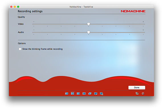 | when two or more users are sharing the same desktop and all are recording but with different quality settings, NoMachine will choose the lowest quality among them. To identify when recording is taking place, check the 'blinking frame' box. |