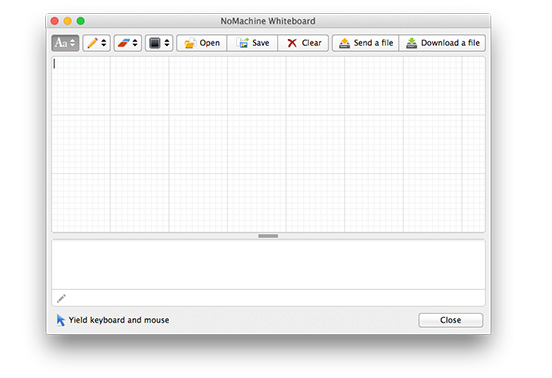 Show the whiteboard Activate the local or remote whiteboard. Use it for instant messaging, drawing and sharing files with connected users. Fast-track access to file transfer.