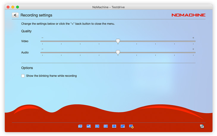 | When two or more users are sharing the same desktop and all are recording but with different quality settings, NoMachine will choose the lowest quality among them. To identify when recording is taking place, check the 'blinking frame' box. |