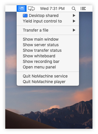 When somebody is connected via NoMachine to the desktop, the !M menu also provides: