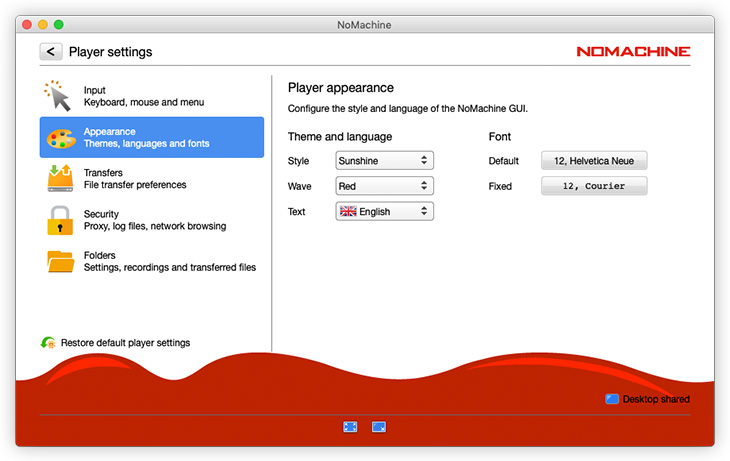 This chapter provides an overview of which are tools at your disposal to configure the session behavior and use the available NoMachine services. More specific guides dealing with some functionalities in detail are available in the 'Tutorials' section here: https://www.nomachine.com/all-documents