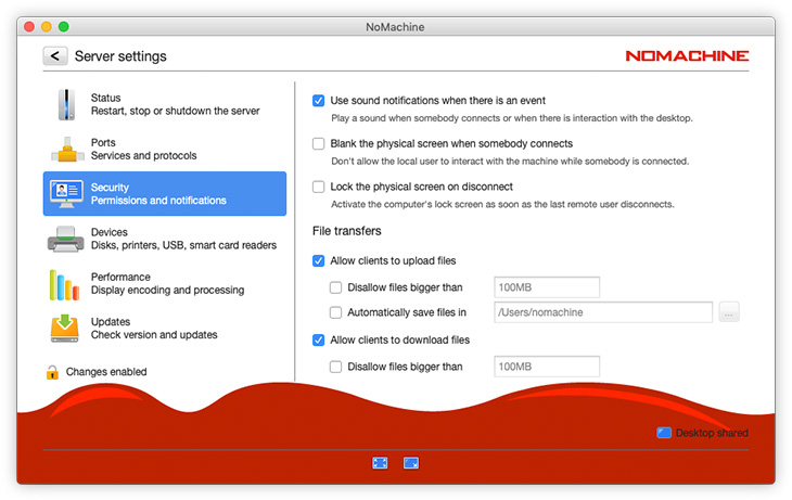 This guide will look at what services and settings can be configured in the server side interface. For guidance on installation and how to start a session to the remote computer, please consult the Tutorials and Installation Guides available in the Support Section of the website: https://www.nomachine.com/all-documents.